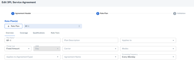 - Plan Name: Default name is provided, this is only necessary if you wanted to set up different fees under the same 3PL Service Agreement for a customer such as one for TL and one for LTL.