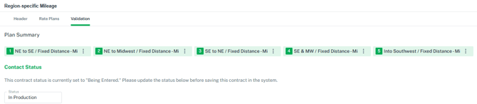 Validation in Freight Agreements allows to check/update status of an agreement, whether it is In Production (active), Expired, On Hold, Under Review, or Being Entered.