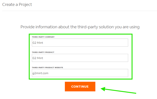 - Name the Project "G2 Mint Tracking" and select the United States.