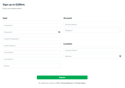 The Account setup is created with your initial login through a provided link. This will create the initial account Contact, who will automatically be the Default Contact. Additional Contacts can be added through these steps.
