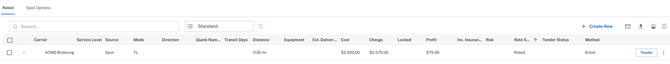 The Shipper can now 'Tender' the shipment, which will send an email to the Broker, allowing the Broker to accept the Tender to complete the Spot Quote process.