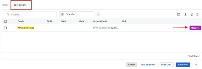 - Guest Shipper builds a Shipment or Load, selects 'Get Rates' and goes to the 'Spot' tab within the Rate Draw screen.