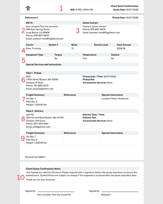 #10. Client Quote Confirmation Notes/ Signature